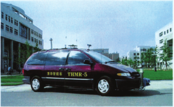 在我国, 清华大学研制成功了THMR-V型自主车辆,它不仅能够在高速公路上行驶,还可以在普通的道路上行驶。采用道奇7厢式汽车作为其车体,如图2-9所示。应用彩色摄像机和激光测距仪作为其环境感知系统,另外还应用了差分GPS、磁罗盘和光码盘作为其定位系统。依靠两套计算机系统对视觉信息进行处理,完成数据的融合以及行驶路径的规划。它已经可以在校园内的道路上行驶和避障。