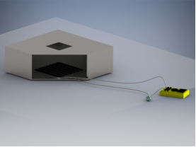 ①将太阳能电板放入测试箱中,使太阳能电板正对测试箱上方开口,将接入太阳能电板的导线引出测试箱外。