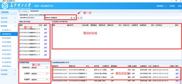 第3步:进入到特殊选课界面后,按照附件图,分区域逐步操作。