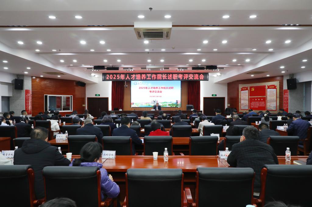 12月16日下午,学校2025年人才培养工作院长述职考评交流会在一办公楼九楼会议室召开。校党委书记付宏渊、副校长王磊出席。考评专家、各学院教学副院长、教务办主任,教务处科以上人员参加了交流会。
