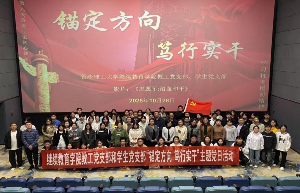 为进一步深化爱国主义教育,传承和弘扬伟大的抗美援朝精神,10月28日晚,继续教育学院学生党支部联合开展“锚定方向 笃行实干”主题党日活动,组织了一场意义非凡的观影活动。学院全体教工党员和学生党员共同观看了影片《志愿军:浴血和平》。