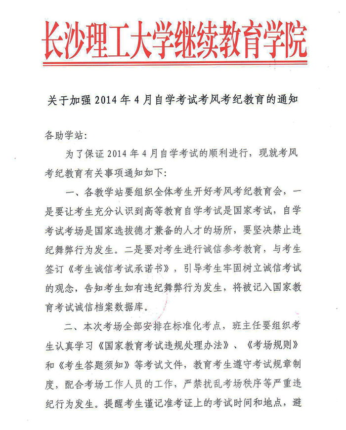 【湖南自考】关于加强考风考纪教育的通知