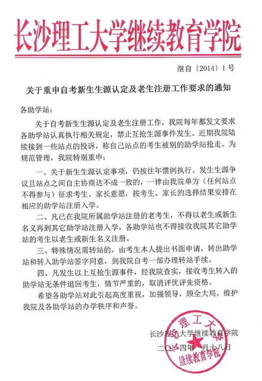 【各自考部】关于重申自考新生生源认定及老生注册工作要求的通知