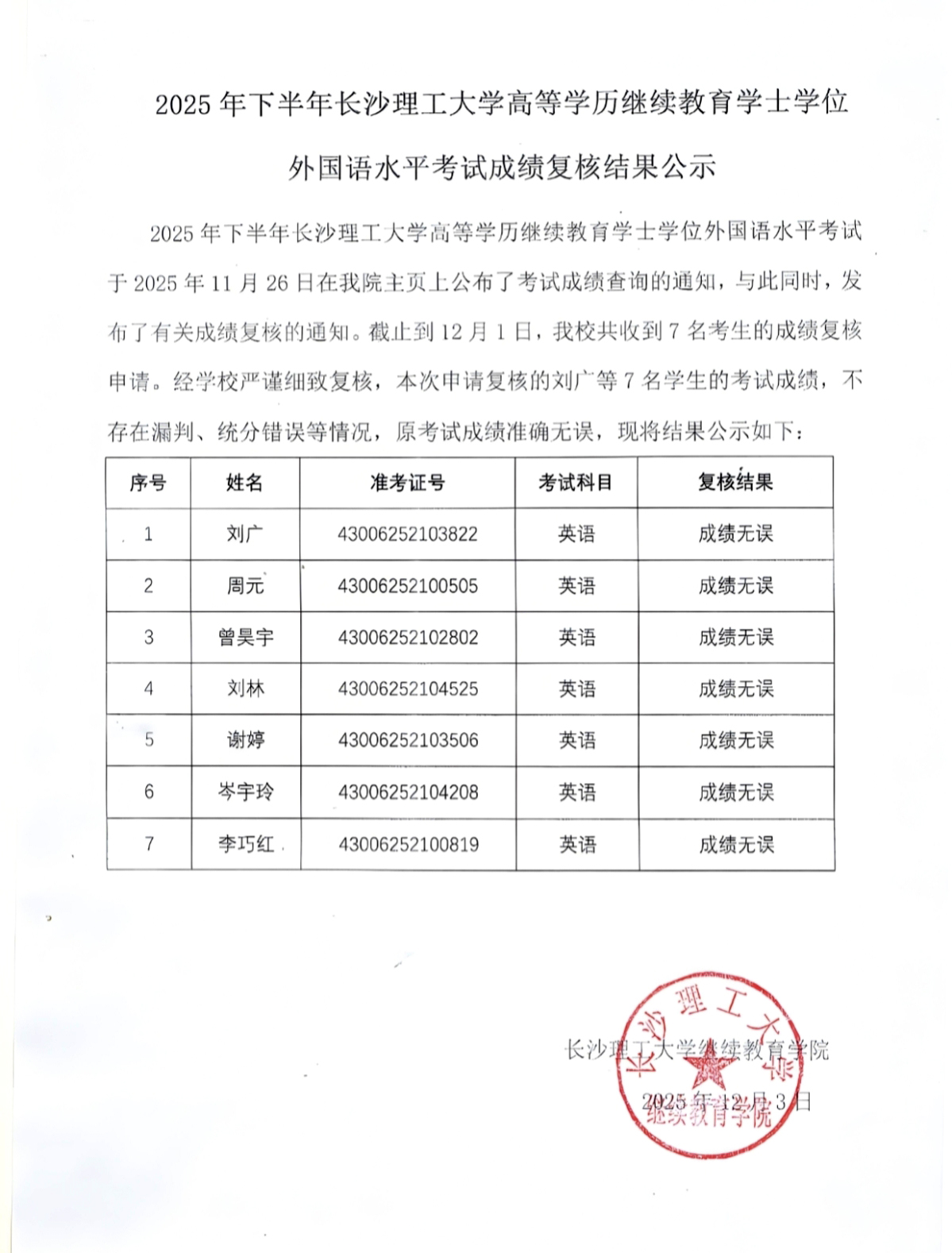 2025年下半年香港六宝合典资料大全高等学历继续教育学士学位外国语水平考试成绩复核结果公示