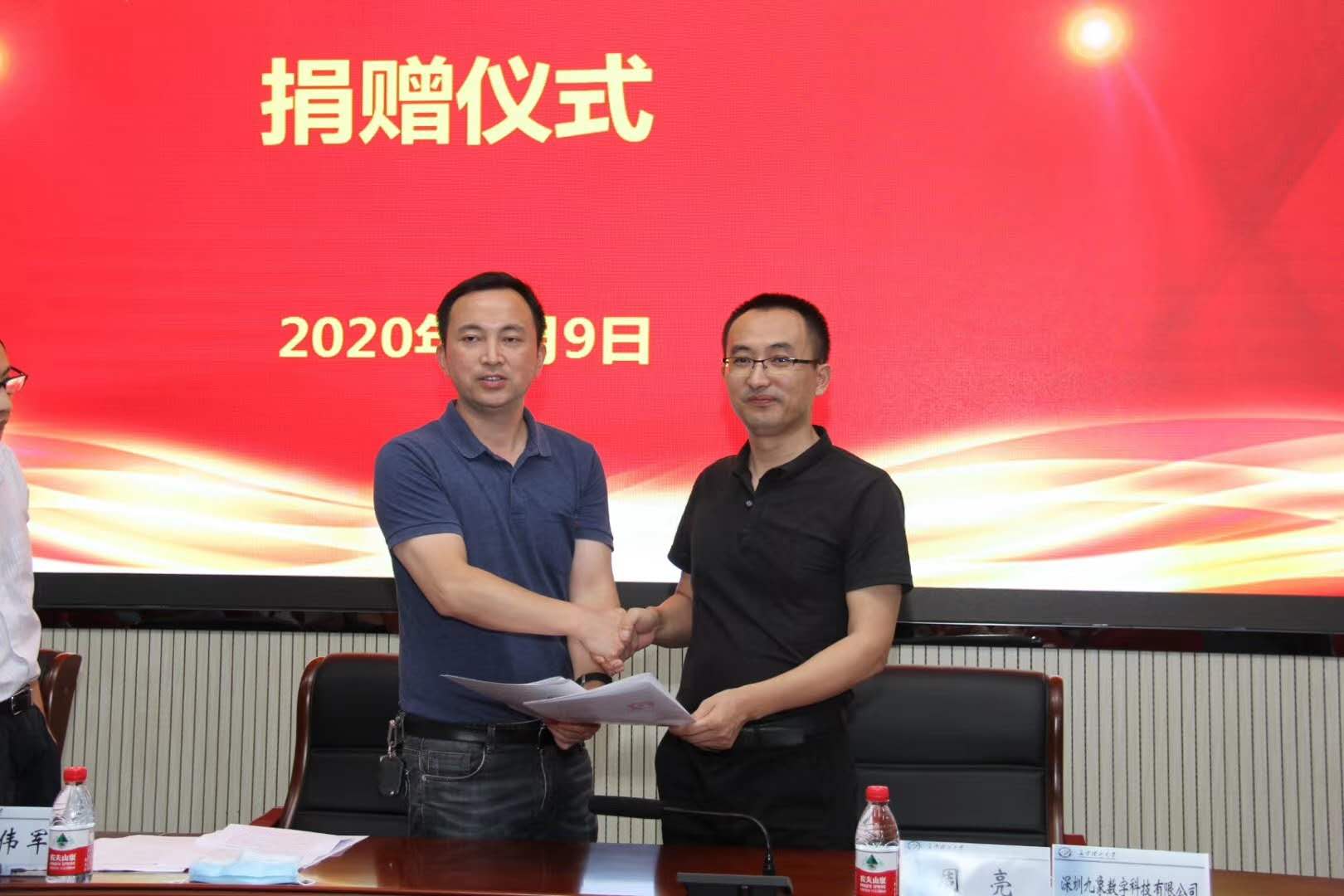 深圳市九象数字科技公司为我校共捐赠价值100万的奖教资金和设备,包括捐赠党建VR体验软件2套,原轻专、水利水电学校老校区的VR虚拟现实漫游定制软件1套,捐赠给土木工程学院九象教育奖学金60万、配套式实操教学软件1套、40VR安全体验软件1套、土木教学相关软件1套。