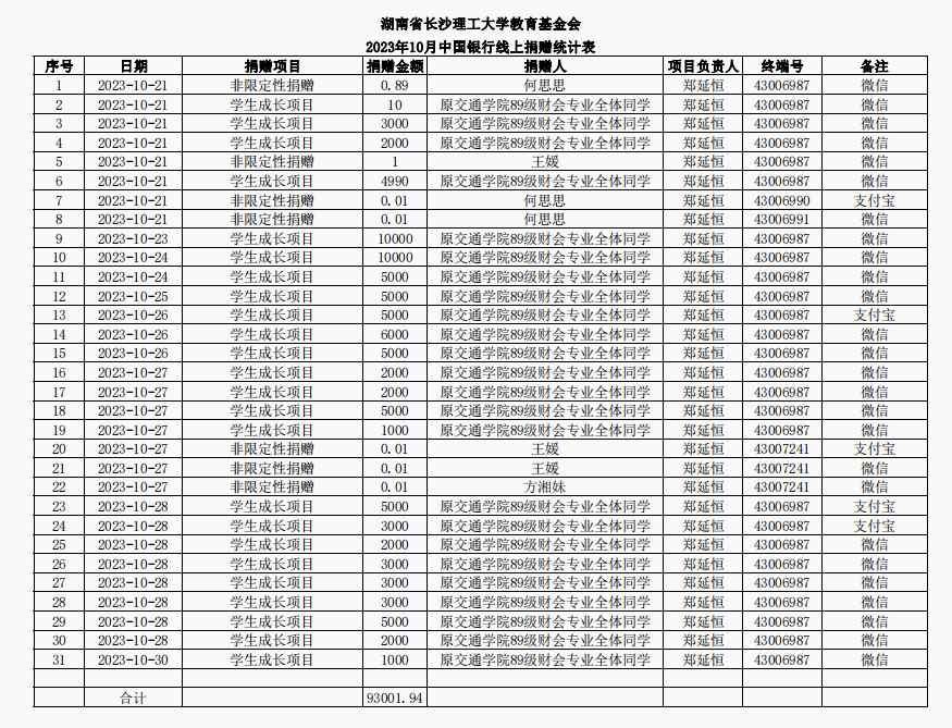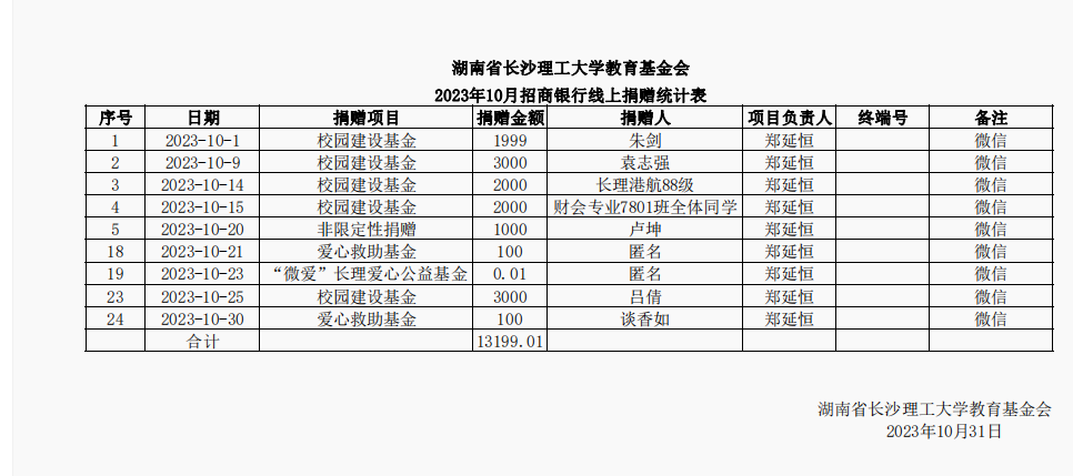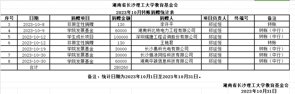 湖南省香港六宝合典资料大全教育基金会2023年10月捐赠收入