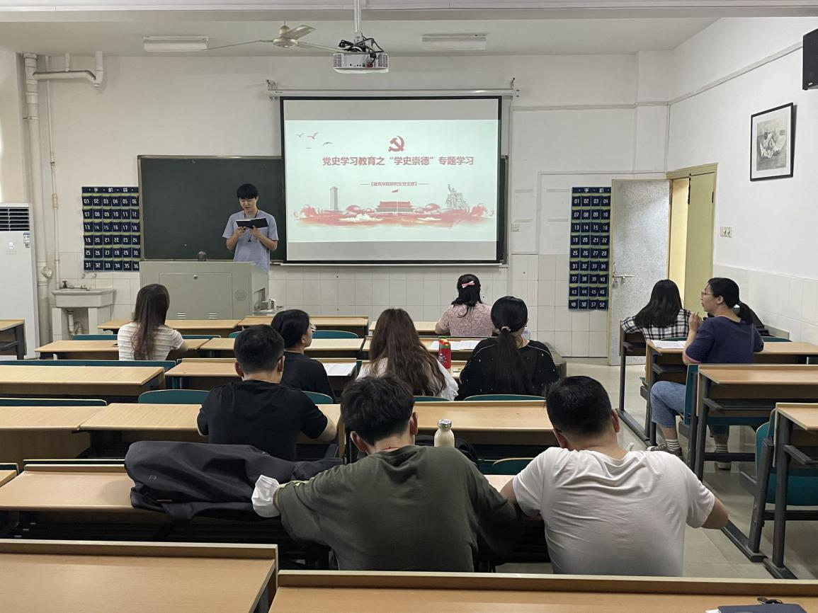 为了更好的贯彻党的十九大精神,激励全院学生党员从党的百年历程中汲取砥砺奋进的精神力量,把爱党爱国奋斗精神转化为助力学校“双一流”建设、全面建成“百强”大学强大动力,我院于5月11日下午两点面向全体学生党员开展党史学习教育之“学史崇德”专题学习交流活动。