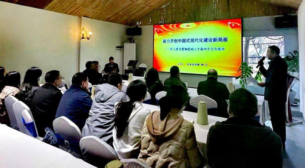 随后,全体人员听取了省委宣传部柳行同志题为《奋力开创中国式现代化建设新局面——深入学习贯彻党的二十届四中全会精神》专题宣讲报告。柳行紧扣党的二十届四中全会精神,系统阐释了中国式现代化的科学内涵、本质要求和战略部署,引导党员教师在实际工作中贯彻落实全会精神,为中国式现代化建设做出应有贡献