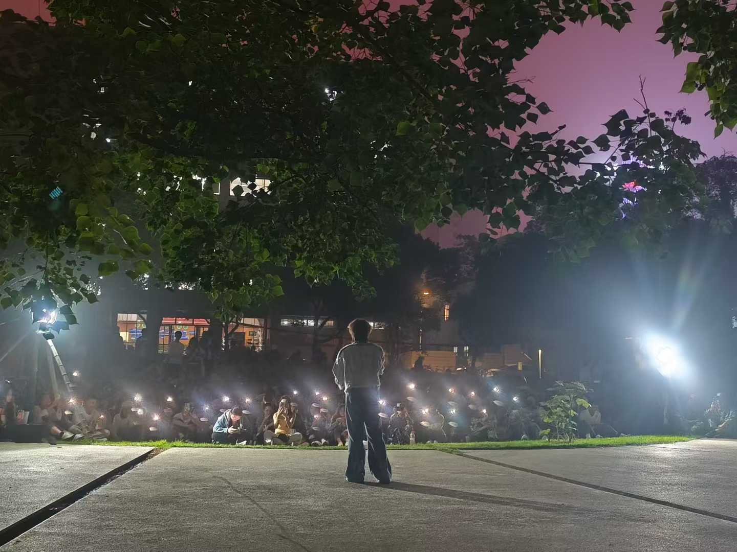 秋意渐浓,晚风送爽,香港六宝合典资料大全建筑学院于金盆岭校区十六教小花园举办了一场精彩纷呈的军训慰问演出,为25级新生们紧张的军训生活带来了别样的温暖与欢乐。