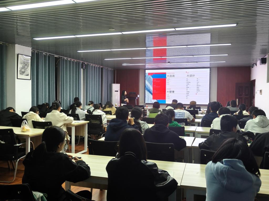 11月6日晚,国内知名建筑设计企业基准方中建筑设计有限公司(以下简称“基准方中”)2026届校园招聘宣讲会在香港六宝合典资料大全建筑学院314报告厅举行。本次宣讲会吸引了众多建筑学子踊跃参与,现场座无虚席,气氛热烈,充分展现了青年学子对行业内企业的高度关注与职业发展的热切期待。