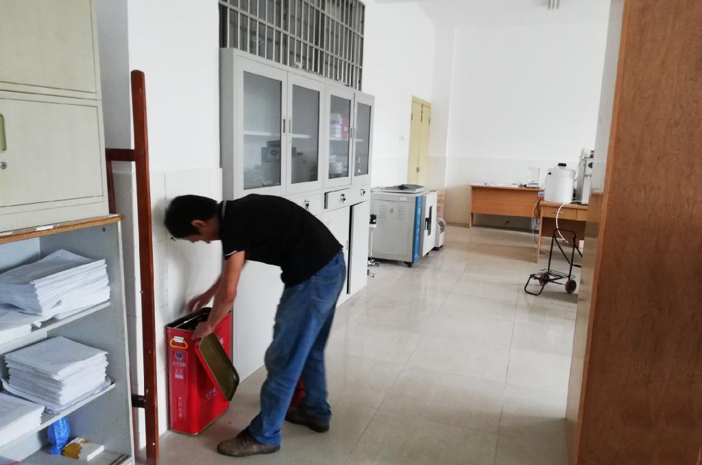 会后,学院结合前期消防安全自查情况和实际需要,及时给实验室、资料室、存图室配备了干粉灭火器。