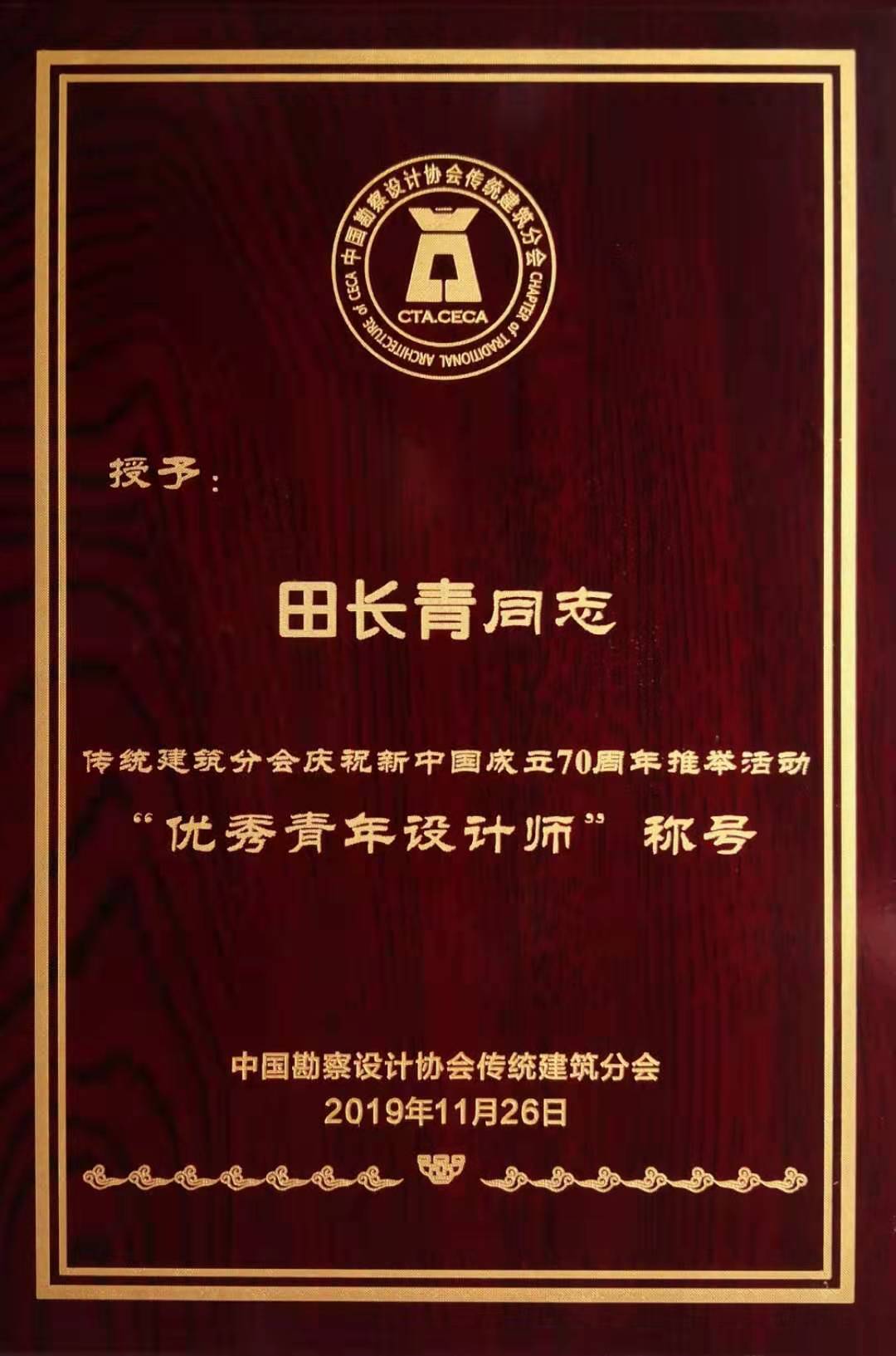 近日,“全国勘察设计行业庆祝新中国成立70周年系列推举活动”成果公布,我院特聘院长杨瑛大师被中国勘察设计协会推举为“杰出人物”;田长青老师被中国勘察设计协会传统建筑分会推举为“优秀青年设计师”。