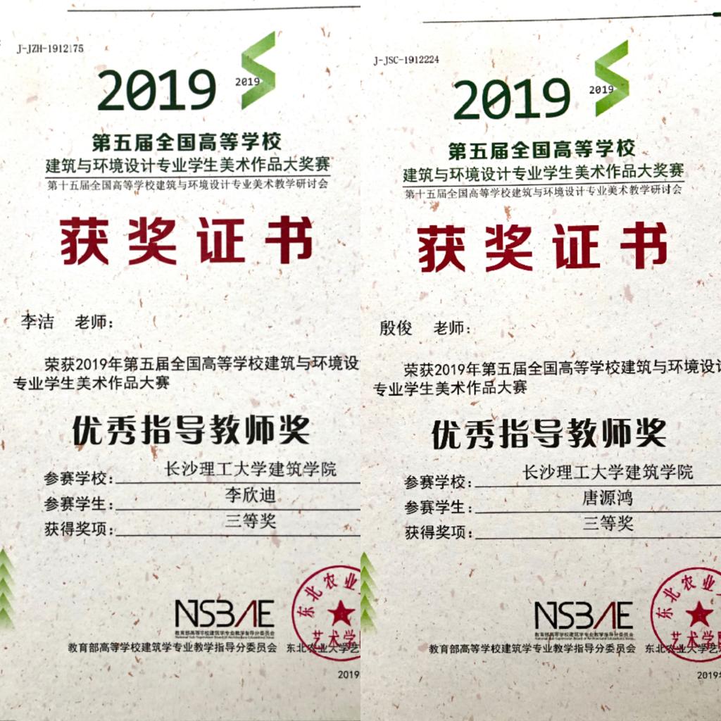 2019年12月27日,在黑龙江哈尔滨东北农业大学,教育部高等学校建筑学专业教学指导分委员会举办 “第十五届全国高等学校建筑与环境设计专业美术教学研讨会”暨“第五届全国高等学校建筑与环境设计专业学生美术作品大奖赛”。由我院建筑美术教学团队指导的学生作品,最终在所有参赛的近两千份作品中获得三等奖 3项、优秀奖2项的优异成绩。李洁、殷俊两位老师获得“优秀指导老师”。