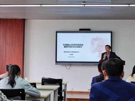 2021年5月18日下午2点30至5点30,建筑学院城乡规划系组织开展了“国土空间规划”主题教研活动。此次教研活动分为主题讲座和主题教学研讨会两部分,由建筑学院副院长熊鹰教授主持,并邀请了校外嘉宾湖南省建筑设计院副总规划师、国土空间规划和自然保护地研究中心主任、高级规划师、国家注册规划师,省科协第十届委员、湖南大学硕士研究生校外导师张成智教授做主题讲座。活动还邀请了我校督导专家郭云开教授、熊丽君教授和张筱峰教授全程参与,此外参加本次活动的还有副院长唐常春教授、系主任刘丹副教授以及城乡规划系全体教师和部分学生。