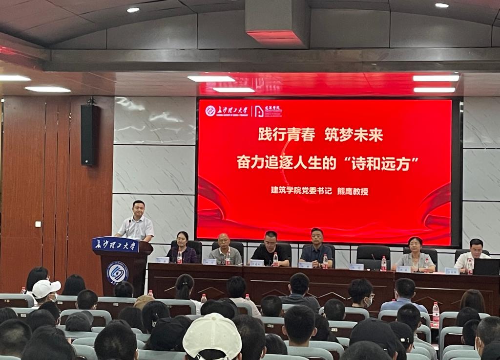 开学典礼在庄严的国歌声中拉开帷幕。建筑学院党委书记熊鹰做了题为“践行青春,筑梦未来,奋力追逐人生的诗和远方”的致辞。他寄语新生坚定理想信念,牢记使命担当,用红色文化丰富世界观、价值观、人生观,听党话,跟党走,将个人“青春梦”融入“中国梦”,努力成长为堪当民族复兴大任的长理特质人才;要用力跑出青春“加速度”,多读书、读好书,既要锤炼专业本领,更要滋养道德情操,努力开阔视野,胸怀家国,同时还要增强抗挫折能力,提升“爬坡过坎”“逆风飞翔”的本领;要坚持把实践和劳动相结合,扎根中国大地,走入基层,深入农村,躬身一线了解国情民情,在社会实践中增长知识才干,在艰苦奋斗中锤炼意志品质,在即将开启的人生新篇章中,以奋进之姿勇敢逐梦,在实现中华民族伟大复兴的时代洪流中踔厉奋发、勇毅前进。