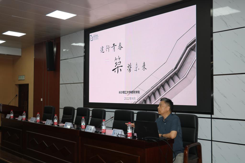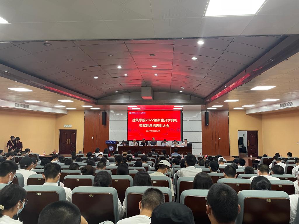 9月14日晚,建筑学院在金盆岭校区4教报告厅举行了2022级新生开学典礼暨军训表彰大会。学院全体党政领导班子成员,系主任、副主任、支部书记,各行政办公室主任、新生班主任、全体辅导员,以及2022级本科生和研究生参加,大会分为开学典礼、军训总结表彰和院长第一课三个环节,会议由学院党委副书记李家春主持。