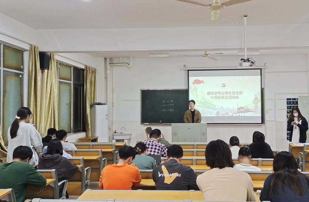 为落实立德树人根本任务,坚持为党育人、为国育才根本目标,践行办好人民满意大学根本宗旨,建设特色鲜明的创新型高水平大学,巩固成果,迎评促建。10月22日晚,建筑学院学生党支部在16教313组织开展“审核评估我知晓,以评促强我助力”主题党日活动,建筑学院团委老师杨斯嘉、建筑学及城乡规划专业全体学生党员参与会议。
