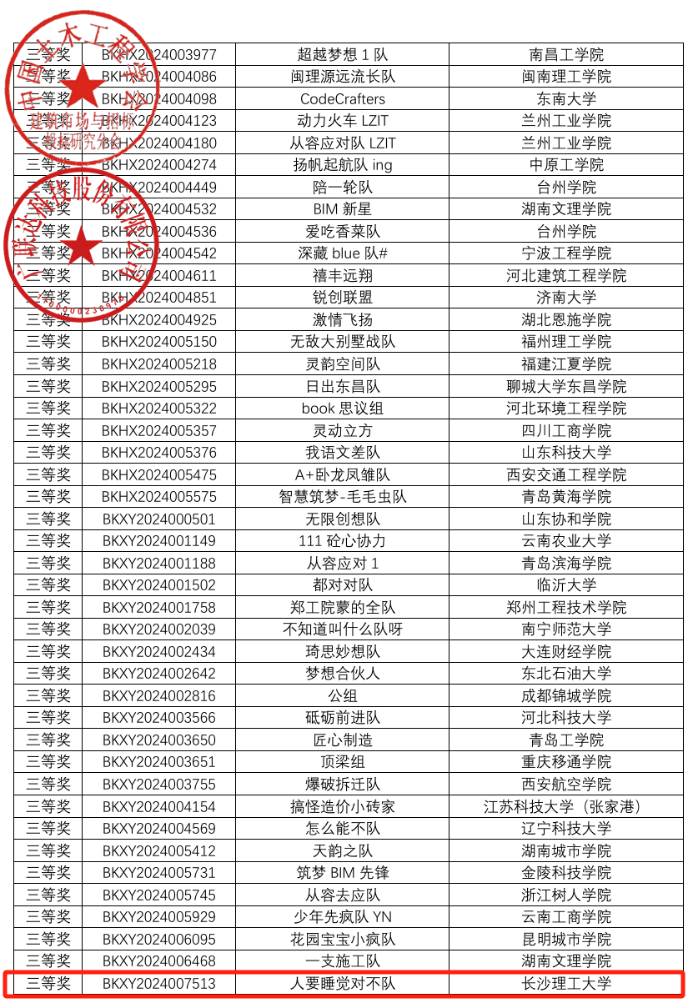 2025年5月21日,第十一届国际高校BIM毕业设计创新大赛揭晓赛果:建筑学院欧璐团队(成员:邓敏、王希诺、李艺、邓之杰,指导教师:熊鹰、陈英)斩获国家级一等奖;蒋津林团队(成员:王英豪、宋佳玲、梁立爽,指导教师:吴世海、吴荻子)获国家级二等奖;李韦逸团队(成员:杨雪贞、肖汉权、霍申峰、刘孟凡,指导教师:欧阳国辉、王轶)获国家级三等奖。