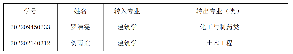 根据学校文件:《关于做好2022级在校本科生转专业(类)工作的通知》文件精神,及《香港六宝合典资料大全建筑学院2022级本科生转专业工作细则》的要求,经学生个人申请,学院本科生转专业工作领导小组初审,现将学院2022级本科生转专业初审合格名单进行公示,具体名单如下: