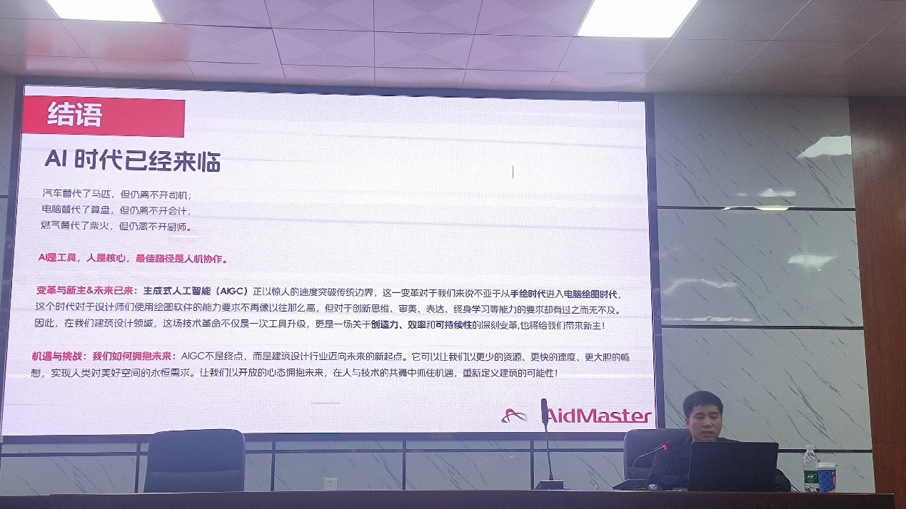 讲座中,主讲人以湖南省院开发的图灵AidMaster平台为实例,生动展示了AI在建筑、室内、景观及规划等多个领域的前沿应用。在建筑领域,AI可以根据不同的场地条件和功能需求,快速生成多种建筑设计方案,大大提高了设计效率。为了让同学们更好地掌握生成式AI在实际项目中的应用,讲座特别设置了实战环节。通过两个城市设计项目与一个乡村规划落地案例,引导同学们现场操作,亲身体验AI辅助设计的完整流程。这种实战体验不仅加深了同学们对生成式AI的理解和掌握,还激发了他们对规划设计专业的学习热情。据悉,国庆期间,多位同学利用假期时间学习AidMaster功能,并积极反馈给主创团队。