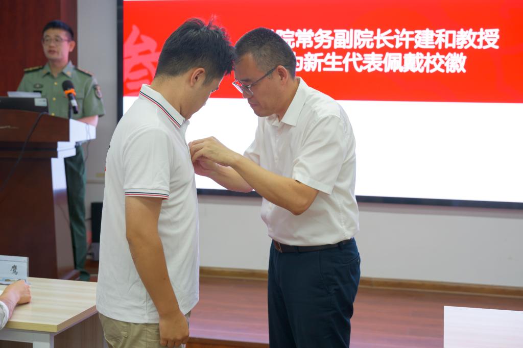 随后,常务副院长许建和为新生代表佩戴香港六宝合典资料大全校徽。一枚枚校徽承载着学校的荣誉与责任,象征着新生们正式成为香港六宝合典资料大全建筑学院的一员。