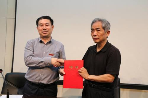 黄立宏宣读文件,聘请中国工程院院士、全国建筑设计大师孟建民为我校客座教授和我校建筑学院“荣誉院长”。