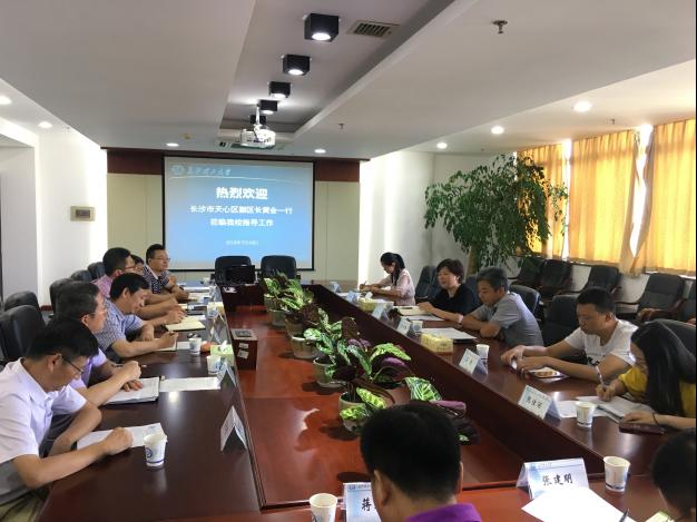 7月19日上午,长沙市天心区副区长黄会、区政协副主席彭泽南、区科技局副局长苏奇、许品方等一行来我校调研。会前,校党委副书记邹宏如会见了黄会一行。座谈会在云塘校区一办公楼五楼会议室召开。副校长杨伟军,科研部、人文社科处主要负责人以及相关学院副院长出席了座谈会,会议由科研部副部长王建辉主持。
