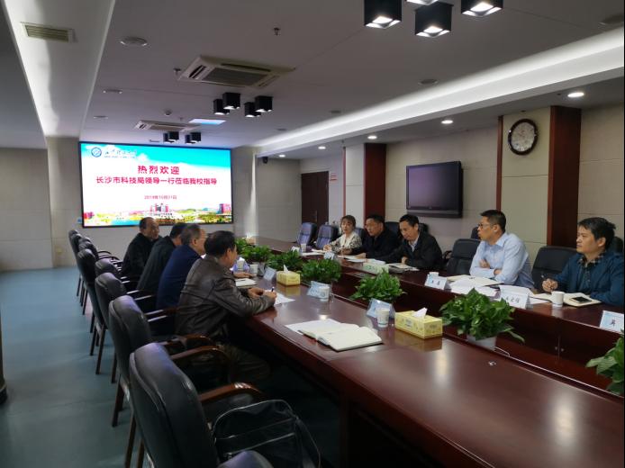 为在创新驱动发展战略背景下进一步做好高校科研管理与成果转化,更好地加强校企联合,10月31日上午,长沙市科技局局长郭塨及相关专家一行5人来我校调研交流。副校长杨伟军,科研部、成果转化中心相关负责人出席调研座谈会。