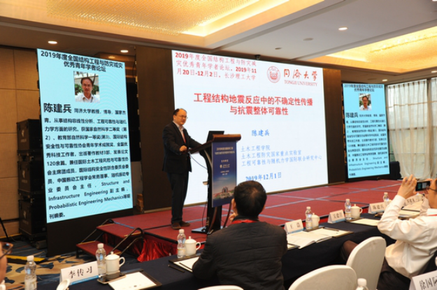 同济大学陈建兵教授作了题目为《工程结构地震反应中的不确定性传播与抗震整体可靠性》的学术报告。基于物理驱动的概率密度演化过程,陈教授探讨了如何将工程设计中的不确定性进行量化。
