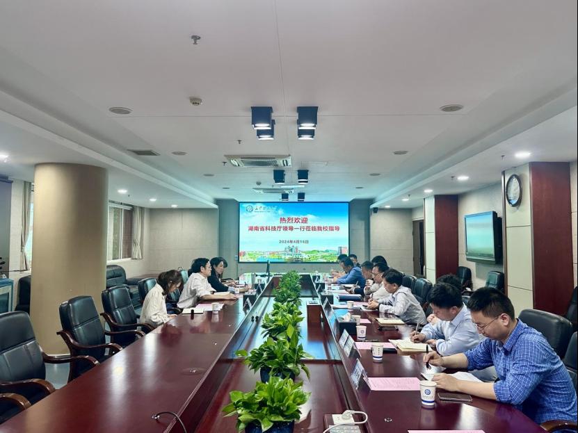 4月16日下午,湖南省科技厅基础研究与科研条件处一级调研员邓先觉一行来我校调研基础研究工作。校党委委员、副校长刘朝晖出席会议,科技处负责人及相关学院负责人及教师代表参加座谈会,会议由科技处副处长唐欣主持。