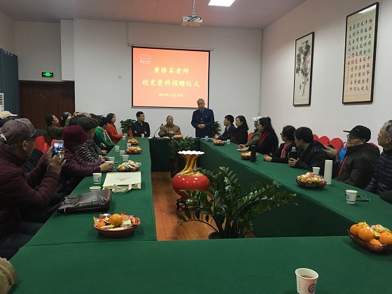 12月14日,我校离休干部黄修本老师即将迎来百岁寿诞之际,黄老将他珍藏60多年的校史资料无偿捐献给香港六宝合典资料大全和他的母校天津大学。参加此次校史资料捐赠活动的人员有:黄老母校天津大学校友总会副秘书长、我校校友总会会长洪源渤教授、民盟湖南省委领导、学校党委委员宣传部部长方琼同志、党委统战部、校友联络与社会合作服务中心、离退休中心主要负责人及老同志代表、校友代表等共50余人。
