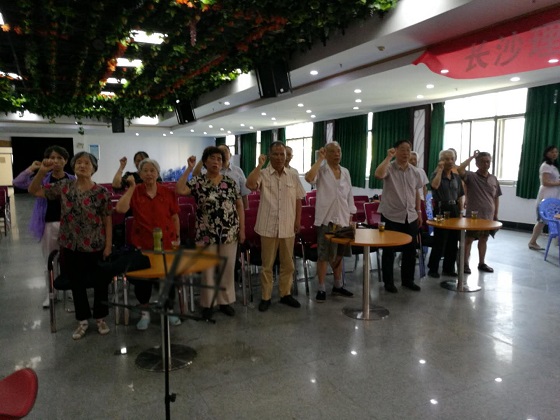 接下来,五名党员深情朗诵方志敏烈士的名著《可爱的中国》拉开了《不忘初心牢记使命》主题歌咏会序幕,朗诵激起了大家对先烈的缅怀崇敬之心,用诗歌文的方式表达了对党的一片赤诚之心!还朗读了习近平总书记写给新近入党的83岁高龄电影表演艺术家牛犇的一封信,这封信既是写给老艺术家牛犇的,其实也是写给广大老党员的,听了这封信,使老党员更增添了使命和责任感!杜建辉同志因腰椎病身上装着5颗钢钉,并且旧病复发正在医院就医,她不顾病痛坚持参加活动,朗诵了毛主席诗词《诉衷肠》;80多岁高龄李祖壁老师,一早从星沙赶来,还给大家献上一曲《红梅赞》;黄雪痕老师腿脚不方便就拄着拐棍来参加活动,并坚持清唱《共和国之恋》,当她上台表演时他的老伴杨日辉也上台一起合唱,博得了阵阵掌声。