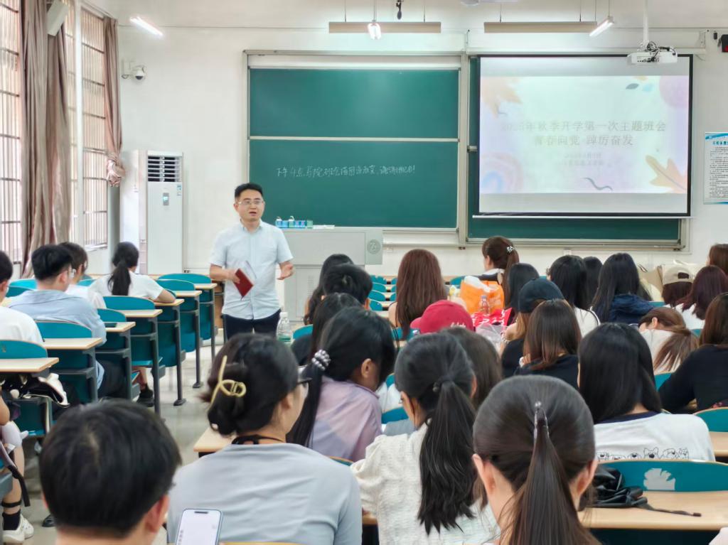 为了帮助大家更好地适应新学期的学习和生活,2025年9月9日下午4:00,马克思主义学院在云塘校区文科楼B203教室召开了秋季开学主题班会。班会以“青春向党,踔厉奋发”为主题,围绕理想信念教育、养成教育和劳动教育、心理健康教育、安全教育、学习计划五个部分展开。会议由学院学工办主任曾蓓主持,党委副书记李晓、2023级和2024级研究生参加。