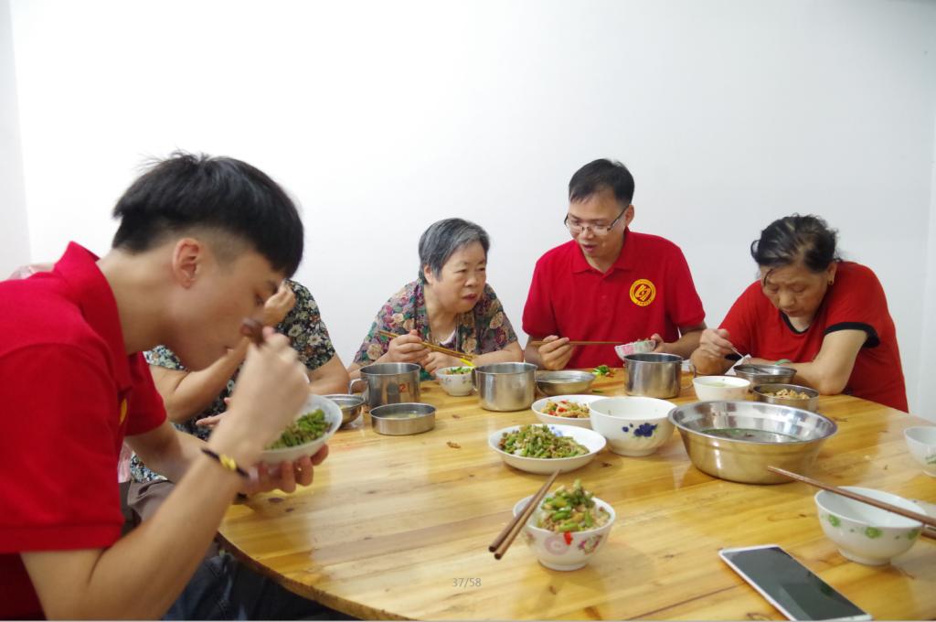 图2:专业实践团在“暖心厨房”同社区老人共进午餐