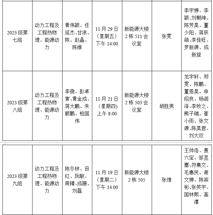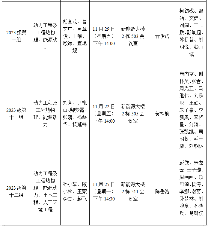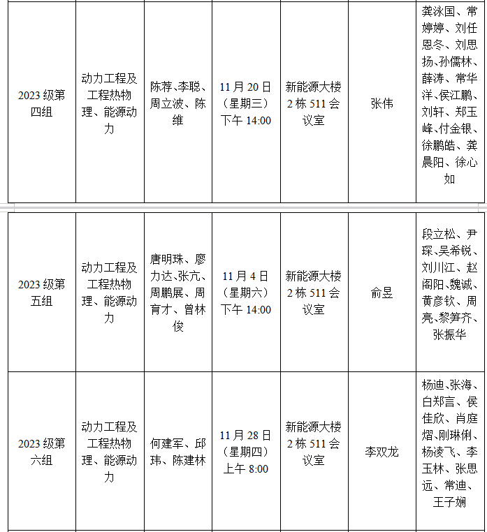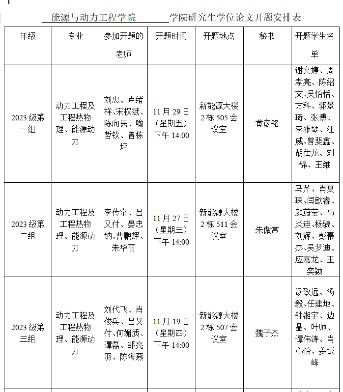 能源与动力工程学院2023级研究生学位论文开题安排表