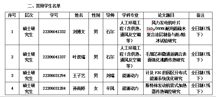 2025年能源与动力工程学院研究生学位论文答辩安排(第三组)