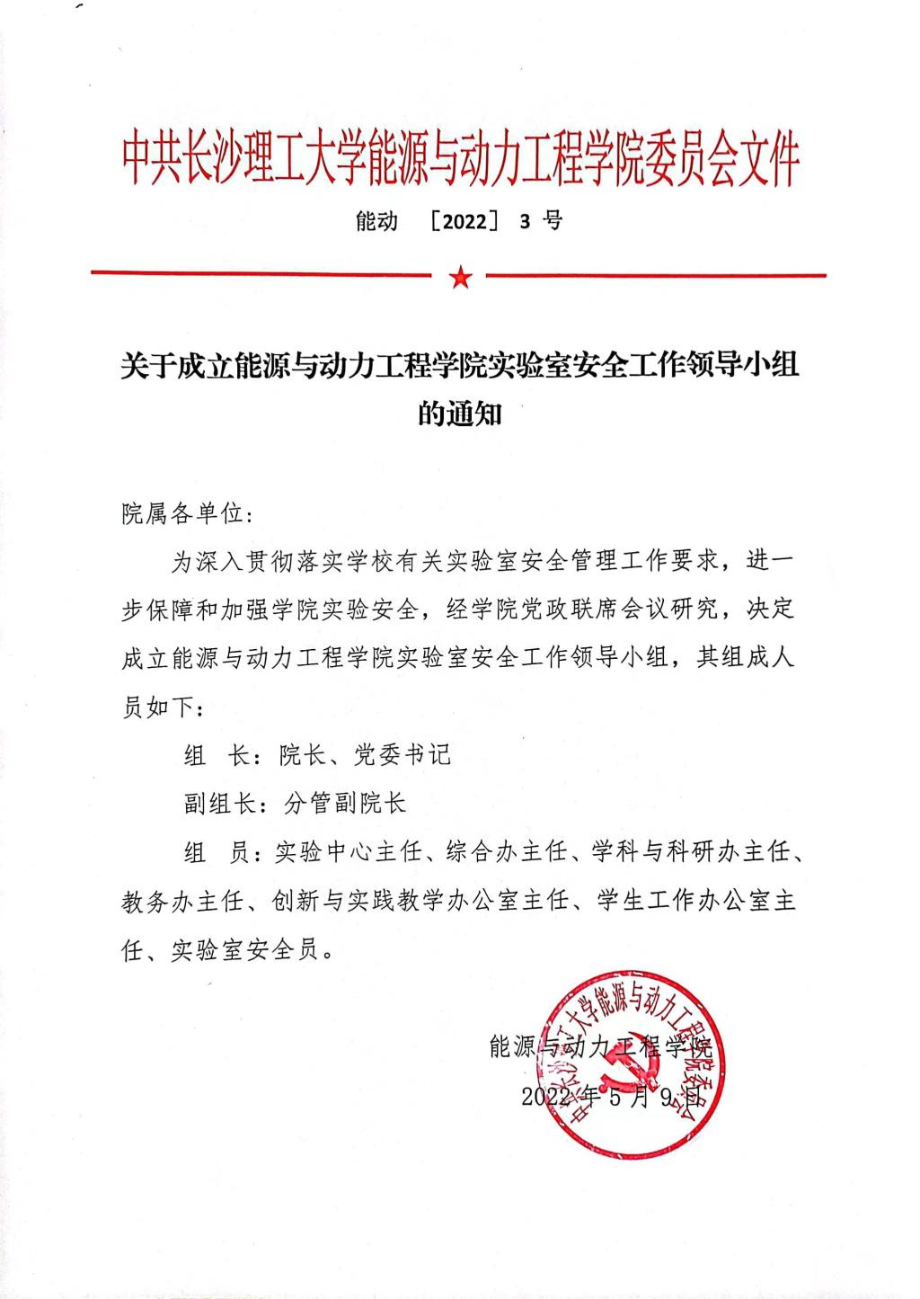 关于成立能源与动力工程学院实验室安全工作领导小组的通知