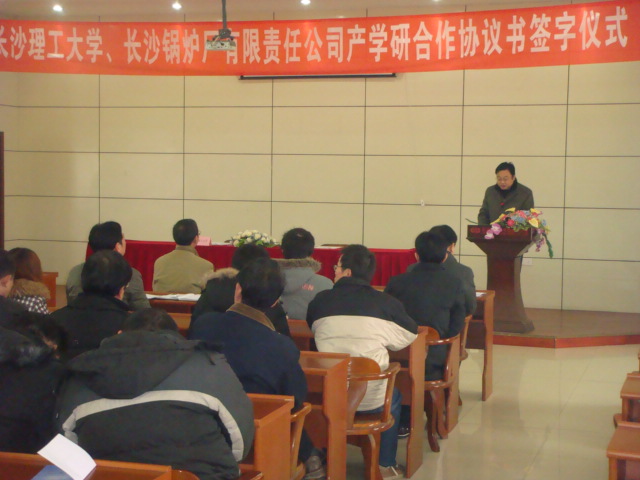 彭益成董事长在讲话中介绍了长沙锅炉厂有限责任公司在产业升级、环保节能、新能源产品开发,特别是生物质锅炉、余热锅炉、核电辅助设备等方面所做的工作,希望与能动学院建立产学研战略联盟关系,开展高起点、多领域、全方位的科技合作。