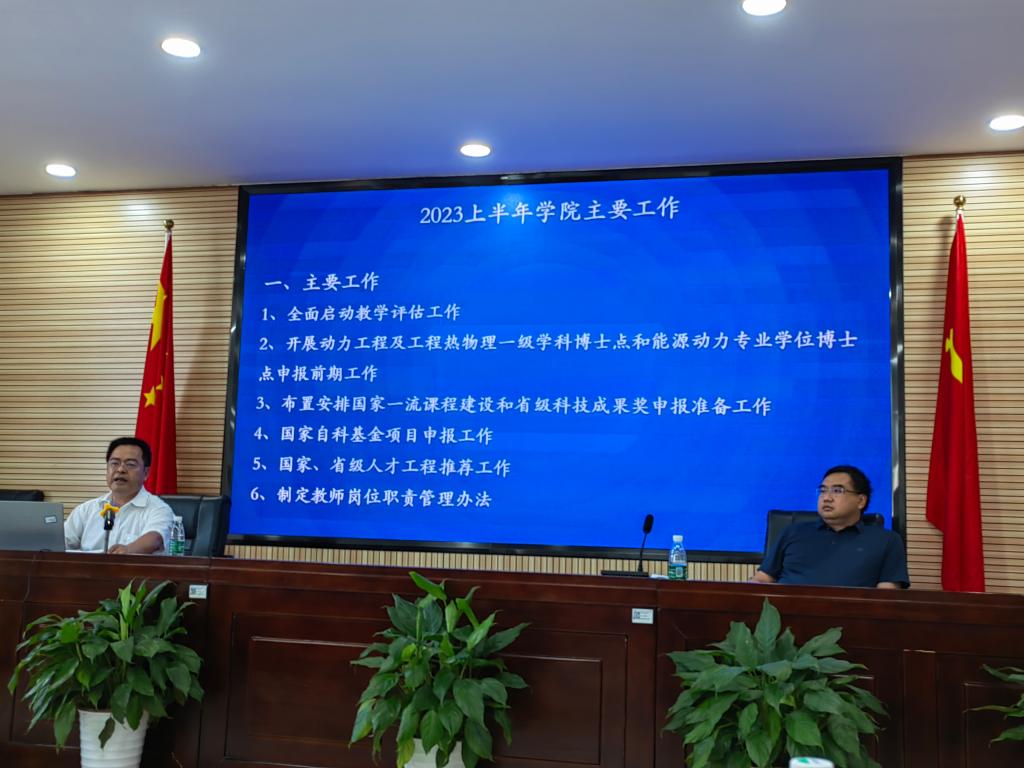 2023年6月27日下午,能动学院在能源2栋504会议室召开全体教职工会议。会议由学院党委书记成华主持。
