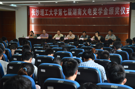 6月26日下午2:30,我校第七届“湖南火电奖学金”颁奖仪式在云塘校区图书馆多功能报告厅隆重举行。副校长邹宏如教授、湖南火电建设公司副总经理黄卫东先生、人力资源部主任刘勇先生、校学工部龚勋副部长、能动学院院长陈冬林教授、电气学院党委副书记丁丹、能动学院党委副书记黄永华以及能动学院和电气学院部分老师、学生代表等160余人出席了颁奖仪式。颁奖仪式由能动学院党委副书记黄永华主持。