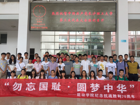 为庆祝中国抗日战争暨世界反法西斯战争胜利70周年,9月3日上午,能源与动力工程学院在工科一号楼A-106会议室组织全体党员、入党积极分子、学生干部组织专题纪念活动,并观看阅兵大典。学院党委书记陈冬林教授、党委副书记田向阳副教授出席会议,党建辅导员李小军主持会议。