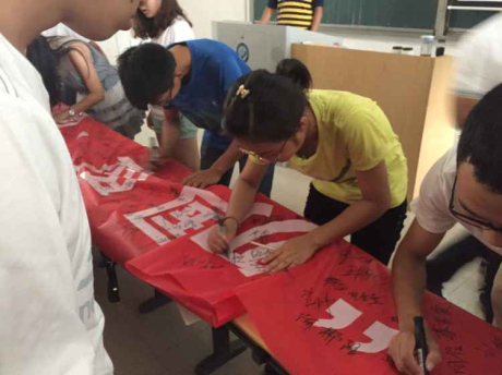会上,陈冬林书记发表重要讲话。他指出,70年前中国人民经过八年艰苦卓绝的抗战,为世界反法西斯战争的胜利做出了巨大贡献,今天我们更应该勿忘历史,缅怀先烈。他希望,全体学生党员、学生干部能够进一步强化社会责任感和国家复兴的使命感,增强独立思考的能力,学好本领,使国家魏然屹立于世界东方之林。然后,举行了庆祝反法西斯战争胜利70周年签名活动。
