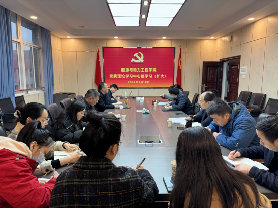 3月18日上午,能动学院党委理论学习中心组在新能源大楼2号楼511会议室传达学习全国两会精神,院党委书记王明彦主持,院党委班子成员、各教工支部书记、全体辅导员参加学习。
