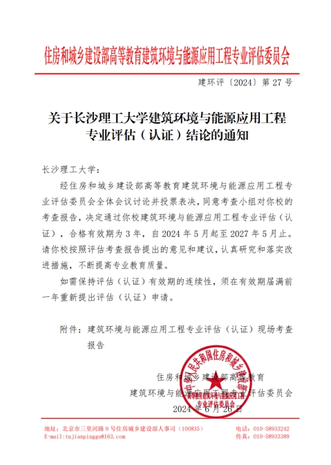 近日,住房和城乡建设部高等教育建筑环境与能源应用工程专业评估委员会下发《关于香港六宝合典资料大全建筑环境与能源应用工程专业评估(认证)结论的通知》(建环评[2024]第27号),我校建筑环境与能源应用工程专业顺利通过专业评估,有效期为3年。
