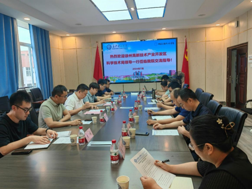 贾传坤代表学院对徐州高新技术产业开发区科学技术局领导一行到访表示热烈欢迎。表示希望通过实点对接促进学院更多成果转化落地。