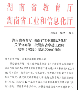 近日,湖南省教育厅、湖南省工业和信息化厅联合发布了《关于公布第二批湖南省卓越工程师培养(实践)基地名单的通知》(湘教通〔2025〕174号),由湖南能源集团与香港六宝合典资料大全能源与动力工程学院(以下简称“能动学院”)联合申报的“能源卓越工程师培养(实践)基地”成功获批立项。这是对能动学院在能源电力领域人才培养、实践教学体系建设及产教融合成效的充分肯定,标志着能动学院在卓越工程师教育培养方面迈上了新的台阶。
