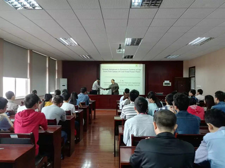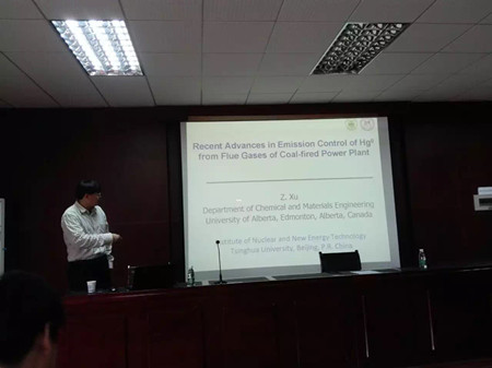 徐政和教授介绍了加拿大燃煤电厂烟气处理技术现状,阐述了燃煤电厂烟气汞排放控制的重要性。随后徐教授从洗煤、提质、烟气吸附等三个方面介绍脱汞方法,重点展示了黏土基吸附除汞材料和工艺,目前徐教授开展的研究工作已经实现了吸附材料的循环使用,并对燃煤电厂烟气多重协同处理提出了新思路。报告提问互动环节,老师们和同学们与徐政和教授进行热烈的讨论,现场气氛非常活跃。