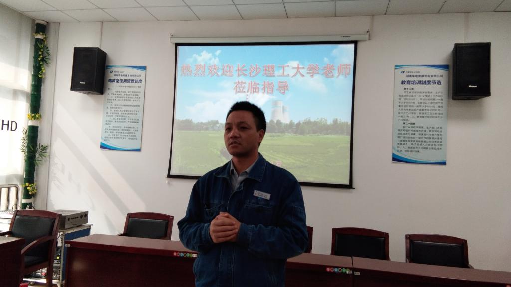 我们到达电厂就受到电厂热烈欢迎,副总经理曾全芝亲自陪同我们这次调研、参观学习活动。电厂运行部主任吴强给我们老师做了题为“华电常德6600MW超超临界机组交流汇报”的报告,报告从电厂工程概况、电厂设计理念与原则、主设备的选型及技术特点、主要辅助设备及系统选型设计与技术特点、电厂采用的新技术、节能节水技术、电厂主要技术经济与排污指标和对能动类专业人才的培养的要求与建议八个方面展开,让我们调研的老师整体了解了常德电厂的基本情况,也触动了我们在人才培养方面要加大改革力度,适应日新月异的能源采掘技术的发展需求。