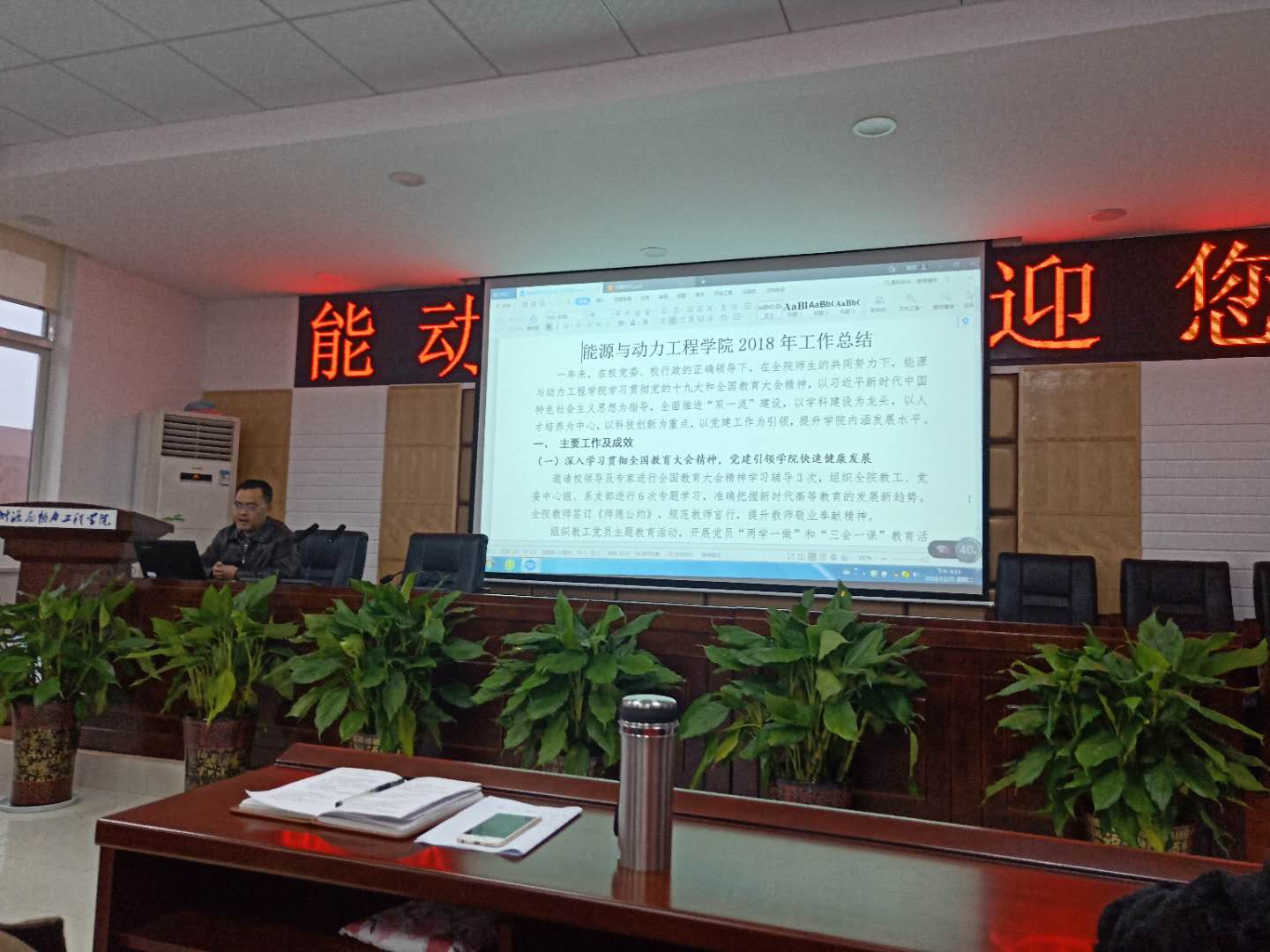 12月25日下午,能源与动力工程学院院长陈荐在能源大楼2号楼504室向全院教职工做2018年学院工作总结。