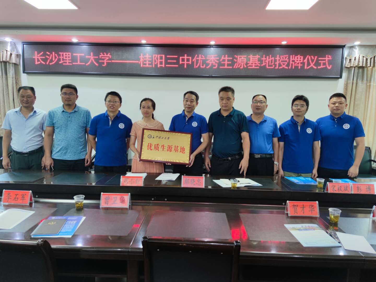 2020年7月28日-29日,能源与动力工程学院副院长鄢晓忠、能动系主任宋权斌、自动化系主任谢七月、学工办彭博等一行,赴郴州地区进行招生宣传和高考志愿填报指导,并签订“共建优质生源基地”协议。期间,主要到访了桂阳三中、临武一中、嘉禾一中三所湖南省示范性普通高级中学。